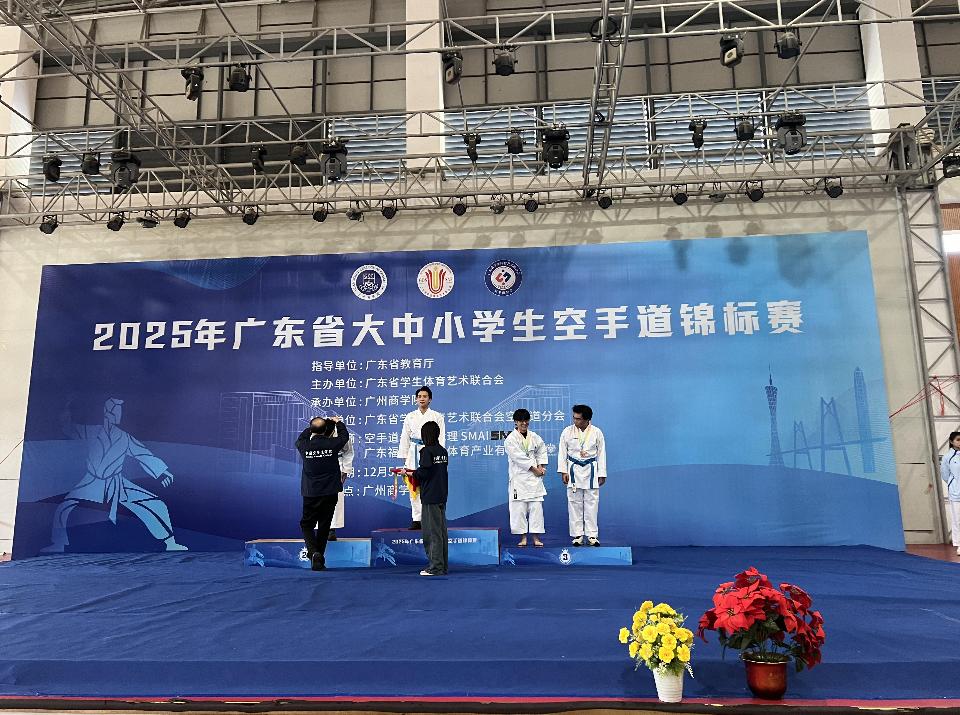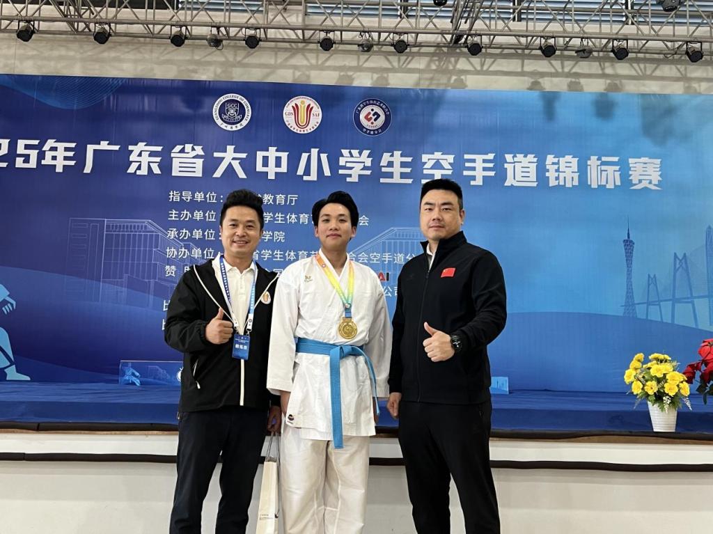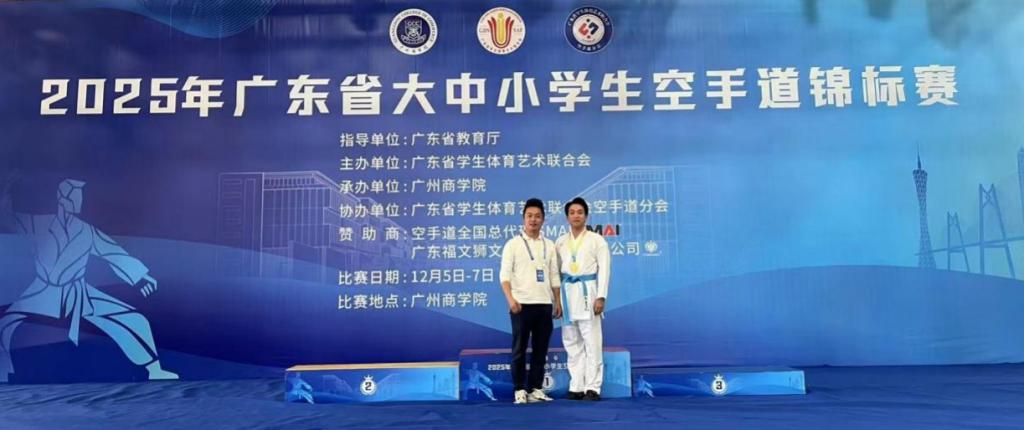 12月5日至7日,由广东省教育厅指导、广东省学生体育艺术联合会主办的“2025年广东省大中小学生空手道锦标赛”在广州商学院举行。广州华商学院空手道代表队凭借出色的表现,在众多参赛队伍中脱颖而出,荣获男子甲组75公斤级第一名,为学校赢得了宝贵的荣誉!